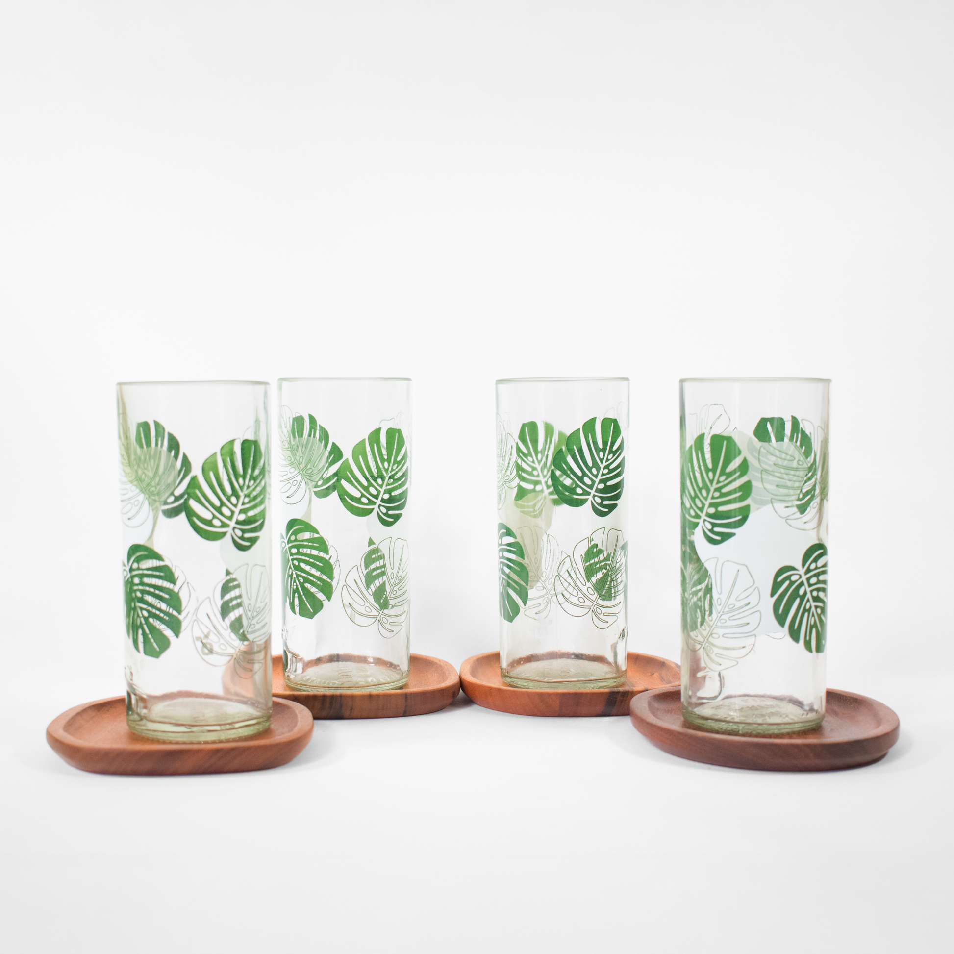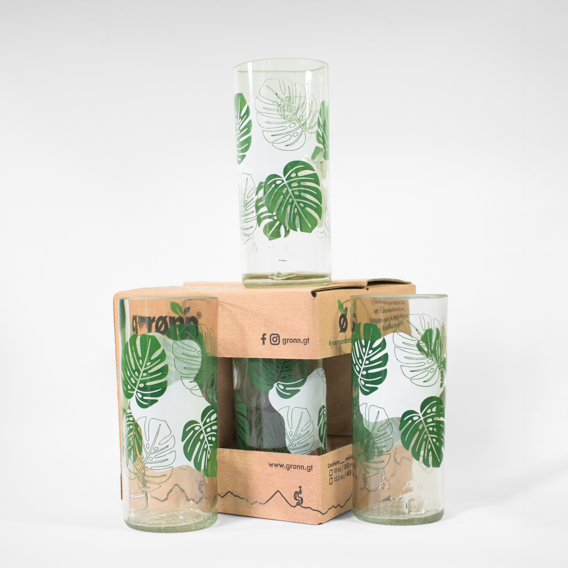Elegancia y naturaleza en un solo diseño. 🍃 Vasos de vidrio reciclado con detalles inspirados en la hoja de mano de león, perfectos para quienes aman lo auténtico y sostenible. ♻️✨