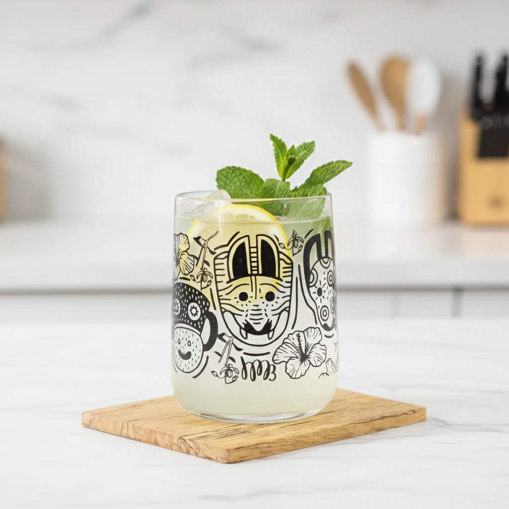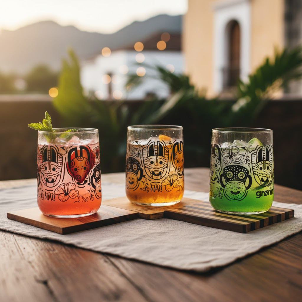 Arte, cultura y sostenibilidad en cada vaso. ♻️ Inspirada en las coloridas máscaras tradicionales, esta colección combina historia y diseño en vidrio reciclado. ¡Lleva un pedazo de tradición a tu mesa! 🌿🔥