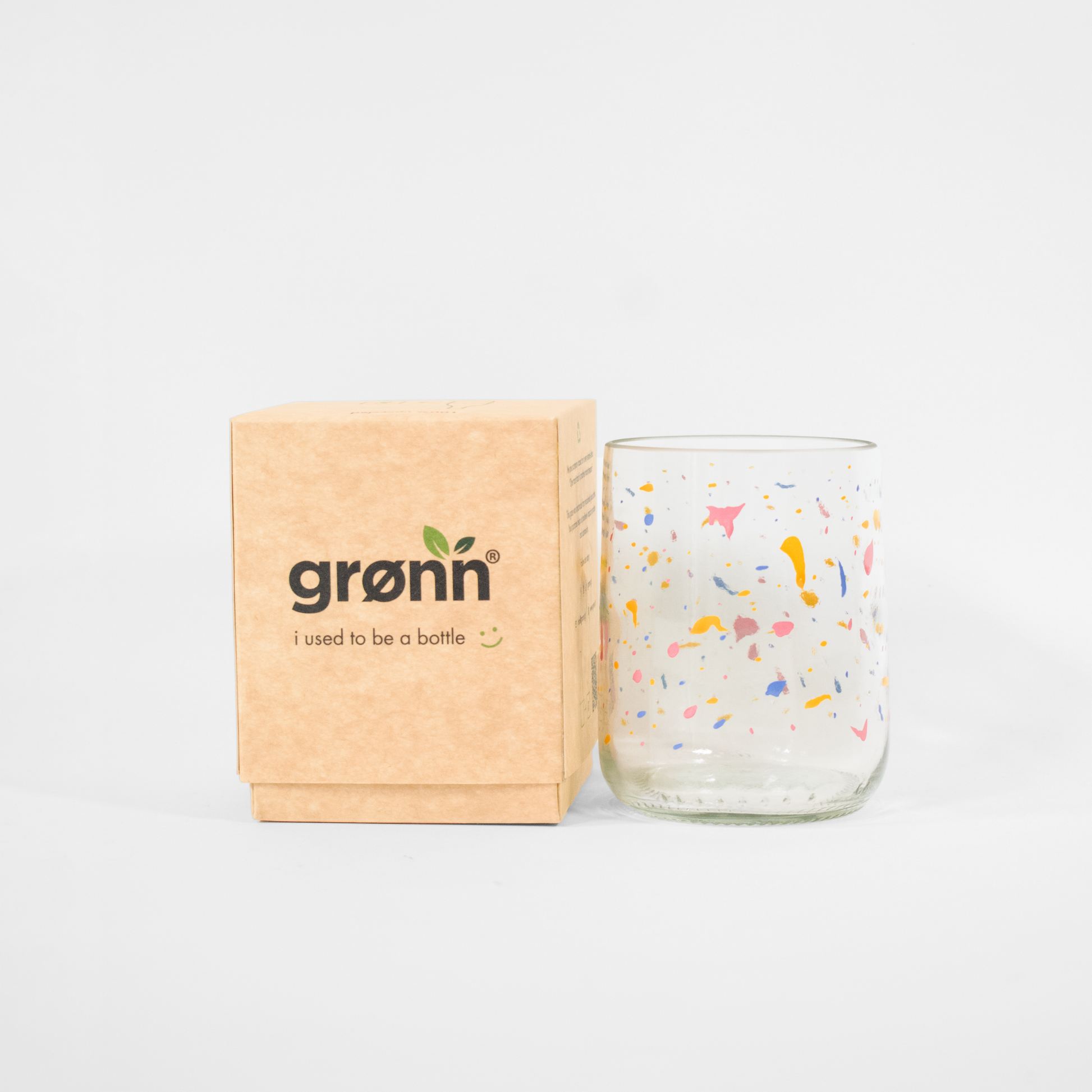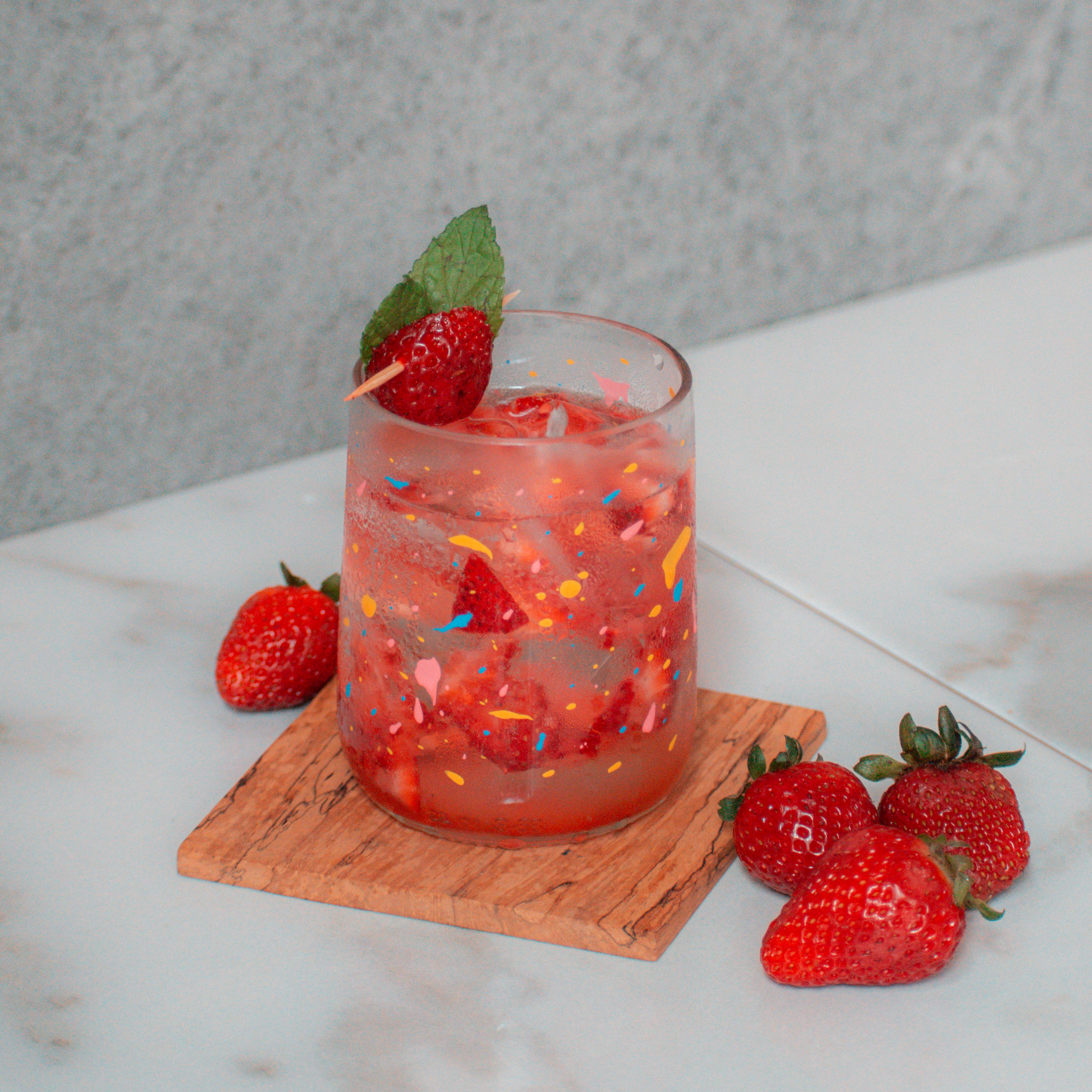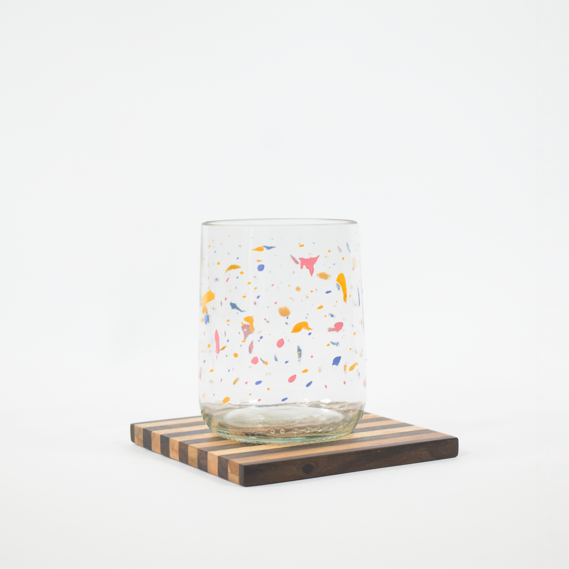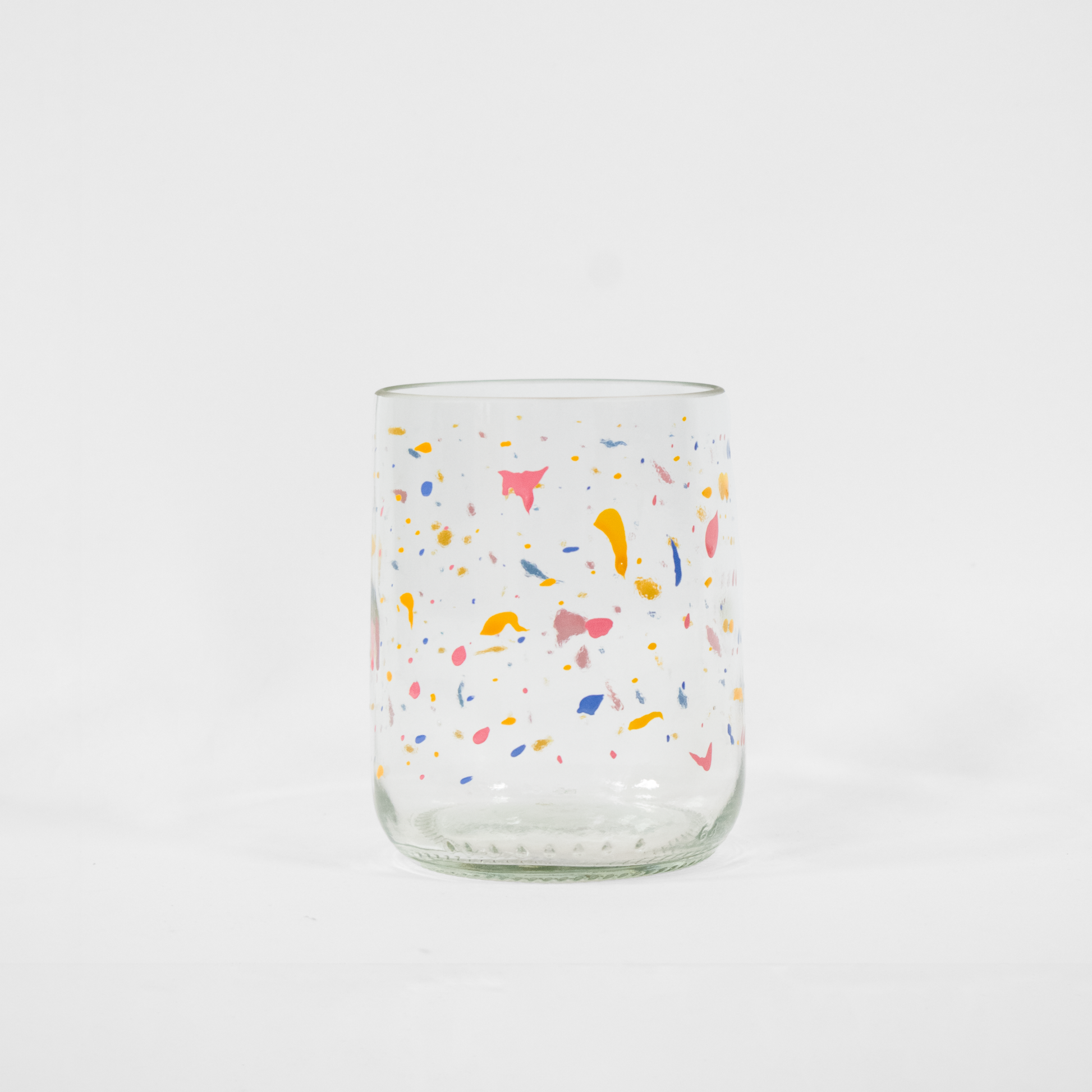 Cada set incluye 4 vasos bajos con diseños Confetti, hechos artesanalmente 🎭