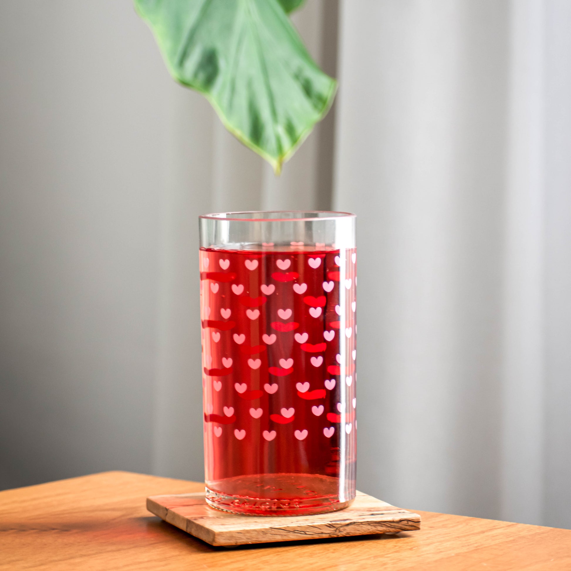 Dale un toque especial a tu mesa con nuestro vaso de corazones rosados. Perfecto para cualquier ocasión, su diseño encantador aporta alegría y estilo a cada sorbo 💗✨